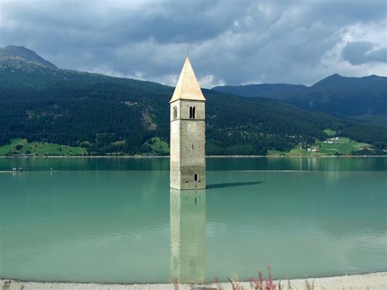 Resia là hồ nhân tạo được xây dựng từ những năm 1950, nằm ở Nam Tyrol, một tỉnh miền bắc Italy. Điểm đáng chú ý ở hồ Resia là có một tháp chuông cổ được xây dựng từ thế kỷ 14 đứng sừng sững giữa lòng hồ. Tháp chuông này là một phần còn lại của khu đô thị bị nhấn chìm khi chính phủ tiến hành xây dựng một con đập vào giữa thế kỷ trước. Vào mùa đông khi hồ đóng băng, du khách có thể đi bộ ra tháp chuông. Ảnh: Jonson9000/Imgur.