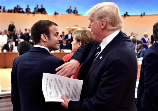 Tổng thống Trump vỗ vai người đồng cấp Pháp Macron trước khi bắt đầu phiên họp đầu tiên tại hội nghị G20.
