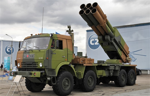 BM-30 Smerch là một loại MRLS hạng nặng được đưa vào sử dụng trong quân đội Nga từ năm 1989. MRLS này sử dụng đạn tên lửa cỡ nòng 300 mm, mỗi bệ phóng mang theo 12 đạn tên lửa. BM-30 có thể bắn đi 12 đạn tên lửa chỉ trong 38 giây, bệ phóng đặt trên khung gầm xe tải MAZ-79111 8x8 bánh. Một trong những điểm vượt trội của BM-30 so với các loại MRLS khác là nó được trang bị loại đầu đạn chống tăng tự dẫn độc đáo. Hệ thống điều khiển hỏa lực sẽ tính toán phần tử bắn và phóng tên lửa đến khu vực mục tiêu, khi đến cự ly đã được lập trình trước, các đầu đạn sẽ bung ra và rơi xuống với sự trợ giúp của một chiếc dù nhỏ. Đầu tự dẫn sẽ quét khu vực để tìm diệt các loại xe tăng-thiết giáp của đối phương. Một loại đầu đạn khác rất lợi hại là đạn chùm, mỗi đạn mẹ mang theo rất nhiều đầu đạn con có thể tấn công mục tiêu trên một khu vực rất rộng. BM-30 có tầm bắn từ 70-90 km. Ảnh: Military-today