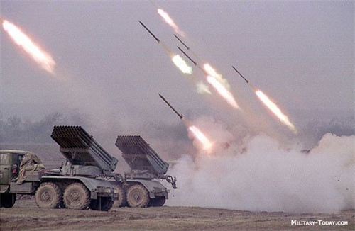 BM-21 Grad là hệ thống pháo phản lực bắn loạt (MRLS) được sử dụng nhiều nhất trên thế giới. Hệ thống được phát triển vào đầu những năm 1960, đưa vào sử dụng trong quân đội Liên Xô từ năm 1963. BM-21 sử dụng đạn rocket không điều khiển cỡ nòng 122 mm, hệ thống được đặt trên khung gầm xe tải Ural-375 6x6 bánh. Từ năm 1976, xe mang giá phóng được thay thế bằng loại Ural-4320 6x6 bánh hiện đại hơn. Mỗi xe phóng mang theo 40 đạn rocket trên giá phóng có thể điều chỉnh kèm theo kính ngắm quang học PG-1M. Điểm đáng sợ của rồng lửa BM-21 là nó có thể phóng đi 40 đạn rocket chỉ trong vòng 20 giây. Một tiểu đoàn gồm 18 xe phóng có thể dội xuống khu vực mục tiêu tới 720 đạn rocket chỉ trong một thời gian rất ngắn. BM-21 có tầm bắn từ 20-40 km tùy thuộc loại đạn rocket. Ảnh: Military-today