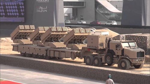 MRLS Jobaria của Các Tiểu vương quốc Arab Thống nhất gây sốc bởi số lượng đạn rocket mà nó mang theo. Mỗi xe mang phóng chứa đến 4 cụm phóng với 60 đạn/cụm, tổng số đạn rocket mang theo tới 240 quả. Jabaria là loại MRLS mang nhiều đạn rocket nhất thế giới. Thực ra Jabaria không phải là một thiết kế mới hoàn toàn, nó là sự kết hợp nhiều giá phóng của BM-21 lên cùng một xe mang phóng. Jobaria được đánh giá cao về sức mạnh hỏa lực song lại đặt ra nhiều vấn đề về khả năng cơ động. MRLS này có tầm bắn tối đa 37 km. Ảnh: Media.moddb