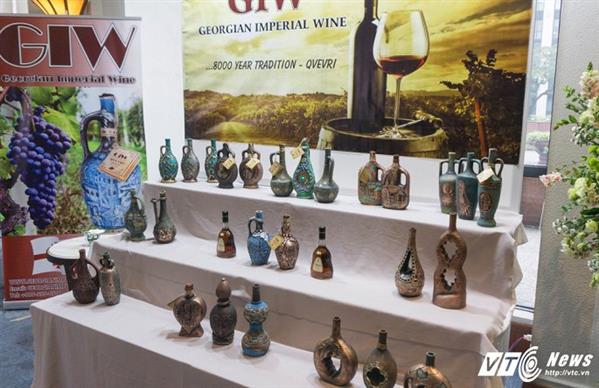 Sản phẩm rượu vang của Gruzia với bình độc đáo được làm thủ công và đậm phong cách truyền thống Gruzia (Ảnh: Nguyễn Tiến)