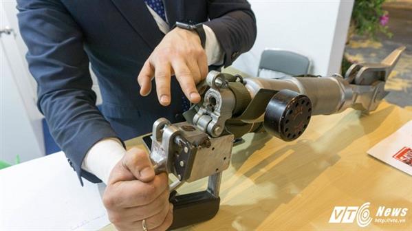 Chiếc kìm này sử dụng viên đạn đặc biệt để tạo lực cắt, thay vì dùng khí nén hoặc điện, cùng với thiết kế nhỏ gọn chỉ một người dùng nên rất phù hợp cho hoạt động cứu hộ ở những vùng hiểm trở (Ảnh: Nguyễn Tiến).