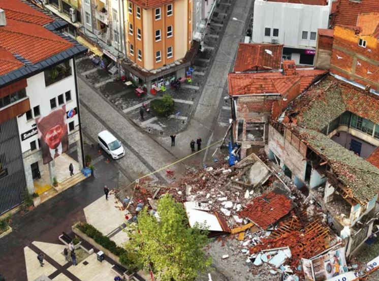 Tòa nhà sụp đổ sau trận động đất 6,1 độ richter xảy ra lúc 22h48 theo giờ địa phương ngày 28 tháng 10 năm 2025 tại khu vực Sındırgı, tỉnh Balıkesir, Thổ Nhĩ Kỳ. © Getty Images / Anadolu/Emin Menguarslan