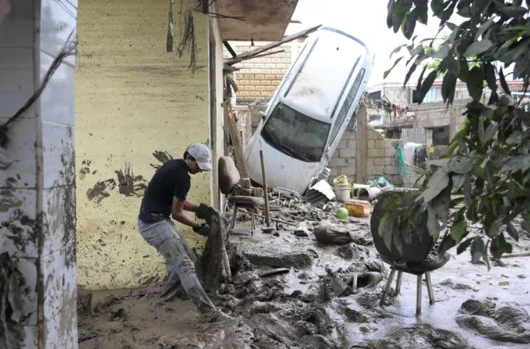 Người đàn ông dọn bùn đất tại khu vực bị ảnh hưởng bởi mưa lớn kéo dài ở Posa Rica, bang Veracruz, Mexico, ngày 13 tháng 10 năm 2025. © Getty Images / Anadolu/Arturo Jurado