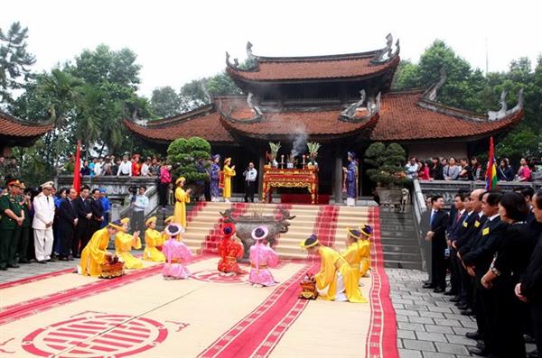 Lễ tế Tổ Mẫu Âu Cơ theo nghi lễ truyền thống. (Ảnh: Quý Trung/TTXVN).