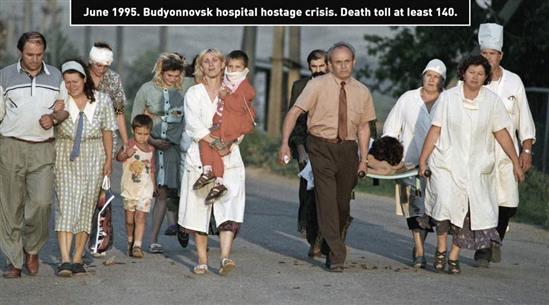 Ngày 14/6/1995: Trùm khủng bố Chechnya Shamil Basayev chỉ huy 200 chiến binh tấn công thành phố Budyonnovsk ở khu vực Stavropol. Nhóm này đã bắt 1.600 con tin trong một bệnh viện và giết chết ít nhất 140 người. Chúng đòi Nga phải rút quân ra khỏi Cộng hòa Chechnya (thuộc Nga).