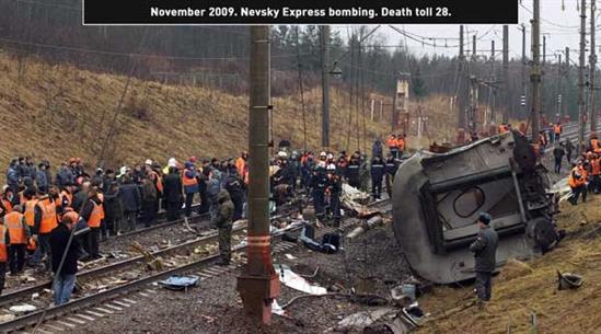 Khủng bố đã hai lần nhằm mục tiêu vào tàu tốc hành Nevsky, nối liền Moscow và St.Peterburg. Lần đầu tiên vào năm 2007, đoàn tàu đã bị trật bánh, nhưng rất may không có ai thương vong. Vụ tấn công thứ hai xảy ra vào năm 2009 khiến 28 người thiệt mạng.
