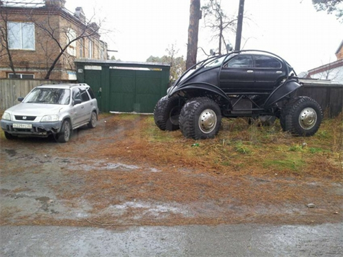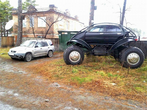 Đi lại trên tuyết mùa đông ở Nga luôn là thử thách cho những chiếc xe hơi đủ loại. Mặc dù ô tô đều phải dùng loại lốp mùa đông nhưng độ dàn lốp theo kiểu này thì hơi hiếm.