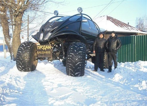 Từ mô hình 3D phác thảo trên máy tính, một anh chàng người Nga đã độ thành chiếc xe đặc biệt này để đi lại trên đường mùa đông tuyết phủ dày ở Nga.