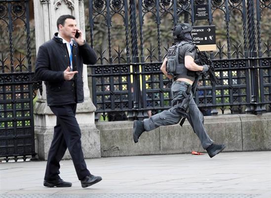 Một họa sĩ của tờ Daily Mail nói thấy nghi phạm mặc đồ đen đã bắn hai ba phát súng trước khi xông vào tòa nhà. Nghị viện Anh khi đó đang họp đã ngay lập tức được dừng lại, các nghị sĩ được yêu cầu ở lại trong tòa nhà. Một số cảnh sát với khiên chắn đạn đã ùa vào tòa nhà Nghị viện.