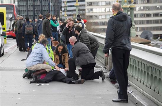 Ít nhất 4 người đang nằm trên mặt đất, một số có máu chảy rất nhiều và bất tỉnh trên cầu Westminster gần đó.