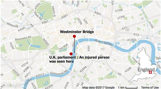 Phóng viên của Reuters đã nghe thấy nhiều tiếng nổ lớn ở tòa nhà Nghị viện chiều 22/3. Guardian đưa tin ngay gần đó, một chiếc ôtô đã lao vào nhiều người đang đứng trên cầu Westminster rồi tiếp tục đâm vào hàng rào Nghị viện.