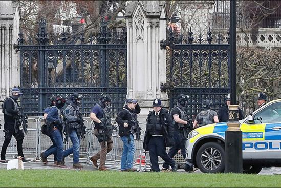 Cảnh sát đã phong tỏa khu vực gần tòa nhà Nghị viện Anh. Ảnh: Reuters.
