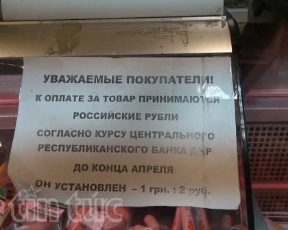 Thông báo giao dịch bằng ruble và tỷ giá 1 hryvnya ăn 2 ruble.