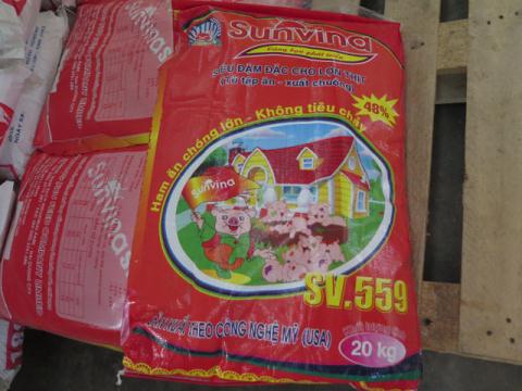 Chất vàng O và bao bì sản phẩm thức ăn chăn nuôi của Công ty TNHH sản xuất thức ăn chăn nuôi Trường Phú.