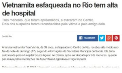 Bản tin đăng trên báo Globo về vụ du khách Việt Nam bị tấn công