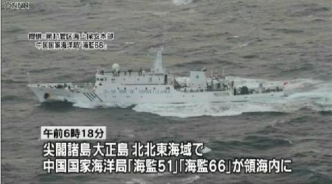 Các nguồn tin Nhật Bản thông báo rằng tàu tuần tra của Trung Quốc “ngang nhiên” tiến vào khu vực mà Nhật Bản coi là lãnh hải của mình.