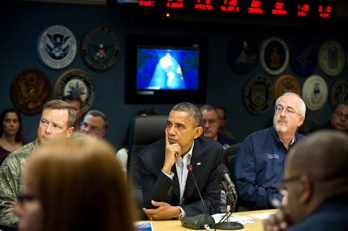 Tổng thống Mỹ Obama nghe báo cáo về bão Sandy tại Cơ quan Quản lý Tình trạng Khẩn cấp (FEMA) tại Washington ngày 29.10