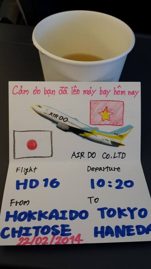 Chiếc thiệp nhỏ được cô tiếp viên hãng Air Do gửi đến tận ghế ngồi khi biết chuyến bay có