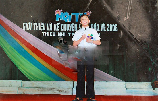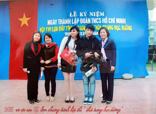 Sơn Tùng M-TP chụp hình kỷ niệm với các bạn học và cô giáo cấp 2