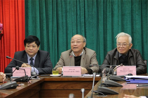 Bác sĩ Nguyễn Quốc Triệu (giữa) và bác sĩ Phạm Gia Khải (phải) tại cuộc gặp cung cấp thông tin. Ảnh: Công Khanh.