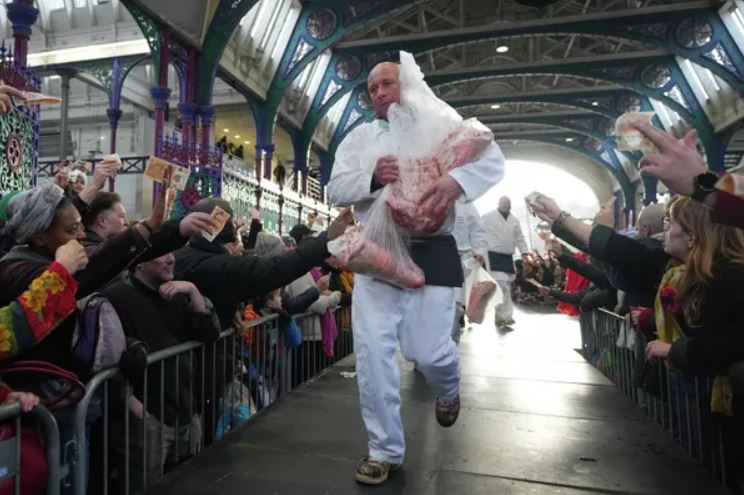 Phiên đấu giá thịt mùa lễ Giáng Sinh ở London. © AP Photo / Kirsty Wigglesworth