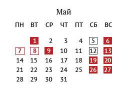 13, 19, 20, 26, 27/5: ngày nghỉ cuối tuần như thường lệ