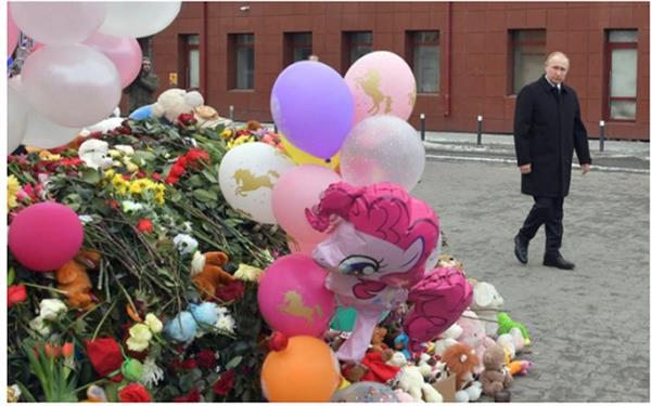 Ngày 27/3, Tổng thống Putin đã đến thành phố Kemerevo để tưởng niệm các nạn nhân vụ cháy trung tâm thương mại Winter Cherry. Ảnh: AP.