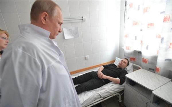Tổng thống Putin thăm nạn nhân bị thương trong vụ cháy đang được điều trị tại bệnh viện. Ảnh: Getty Image.