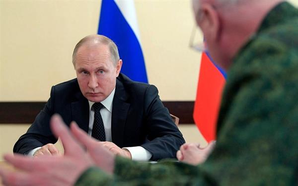 Ông Putin đang lắng nghe các quan chức địa phương giải trình về vụ cháy tại trung tâm thương mại. Ảnh: AP.