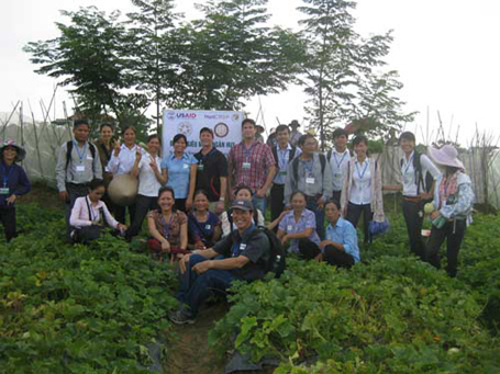 TS. Vọng (giữa, hàng đầu) cùng các đồng nghiệp đưa VietGap vào sản xuất dưa lê tại Sóc Sơn, Hà Nội.