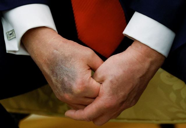 Một chi tiết gây chú ý là gần đây ông Trump nhiều lần xuất hiện với các vết bầm tím trên mu bàn tay phải. Một số ý kiến cho rằng đây có thể là dấu hiệu bệnh lý.