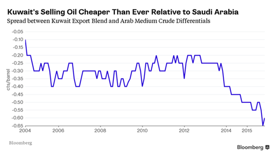 Giá dầu thô Export Blend giao tháng 10 mà Kuwait bán cho châu Á hiện đang rẻ hơn 65 cent so với dầu Arab Medium của Arab Saudi có chất lượng tương đương. Hợp đồng giao tháng 11 đang rẻ hơn 60 cent, kéo giãn mức chênh lệch 40 cent vào đầu năm 2014.