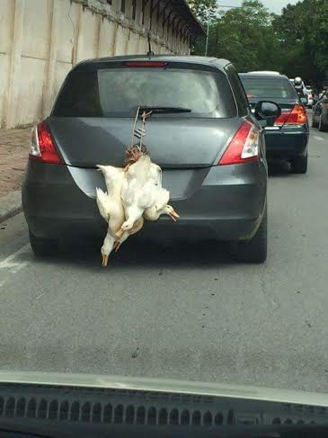 Thậm chí là cả một bầy vịt được treo ở đằng sau xe, lấp hết cả biển kiểm soát xe ôtô