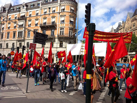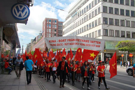Khoảng 300 bà con, các lưu học sinh người Việt Nam hiện đang sinh sống và học tập tại Stockholm và các tỉnh lân cận, cùng nhiều bạn Philippines và cả những người bạn Thụy Điển với quốc kỳ và các băng rôn, khẩu hiệu phản đối Trung Quốc, đã tham gia cuộc biểu tình tuần hành này. Đây là một trong các cuộc tuần hành mới nhất của kiều bào ta ở nước ngoài kể từ khi Trung Quốc hạ đặt giàn khoan Hải Dương-981 trái phép trong thềm lục địa và vùng đặc quyền kinh tế của Việt Nam ở Biển Đông vào đầu tháng 5 vừa qua.