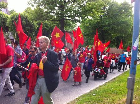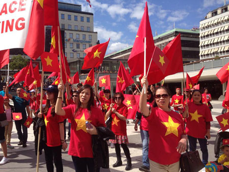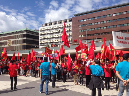 Ngày 1/6, đông đảo bà con trong cộng đồng người Việt Nam tại tại Stockholm và nhiều vùng ở Thụy Điển đã tham gia tuần hành tại Sergels Torg và trước sứ quán Trung Quốc ở Stockholm, nhằm góp sức cùng đồng bào cả nước trong cuộc chiến đấu bảo vệ chủ quyền lãnh thổ, giữ vững giang sơn, hải đảo của tổ quốc Việt Nam.