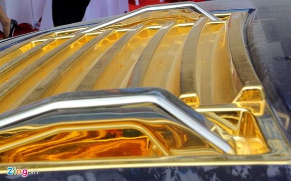 Sáng 28/4, bộ đôi xe sang Rolls-Royce Phantom và Hummer H2 nhiều chi tiết mạ vàng cùng xuất hiện ở Hà Nội. Phantom mang biển số Sài Gòn, thuộc sở hữu của một đại gia kinh doanh bất động sản. So với Hummer H2, chiếc Phantom độ công phu hơn.