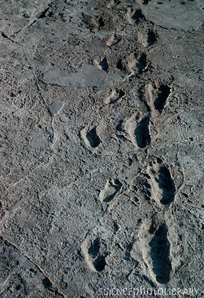 11 dấu chân in lại trên đá trầm tích ở Laetoli, đất nước Tanzania, Châu Phi, được các nhà nghiên cứu nhận thấy nó được tạo ra từ dáng đi giống như của con người hiện đại hơn là tư thế đi lại khó khăn, vụng về của loài tinh tinh, đười ươi hay khỉ đột.