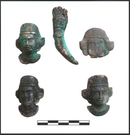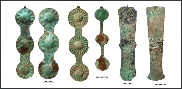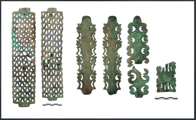 Trong số những hiện vật nổi bật có tới 17 tấm bảo vệ trán bằng đồng, 30 tấm bảng khảm