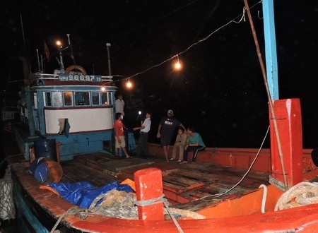 Sự việc tàu cá của ngư dân Trần Hiền chưa nguôi, tối qua 16/8, tàu cá QNg 96697-TS của ngư dân Lê Khởi lại trở về đảo Lý Sơn với nhiều vết tích bị đập phá và bị cướp mất toàn bộ máy móc, tài sản trên tàu.