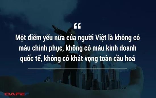 Ông cho rằng, các doanh nghiệp Việt có điểm yếu kém là chỉ quanh quẩn trong đất nước, thậm chí thành phố, tỉnh của mình, không có khát vọng vươn ra biển lớn, toàn cầu hoá.
