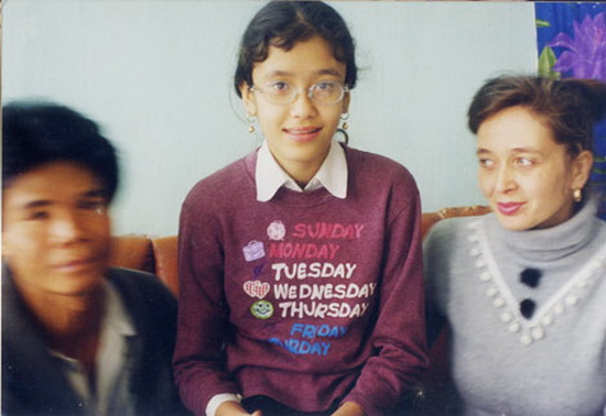 Gia đình anh Trần Trọng Hải, chị Anbina Trebontasova và con gái, tại Quảng Ninh năm 1999