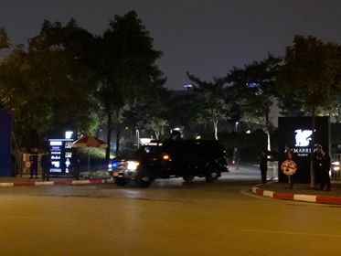 Lực lượng an ninh được bố trí trước cổng chính Khách sạn JW Marriott