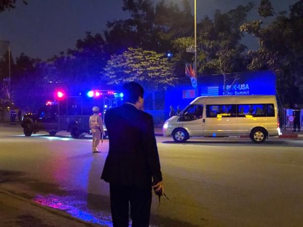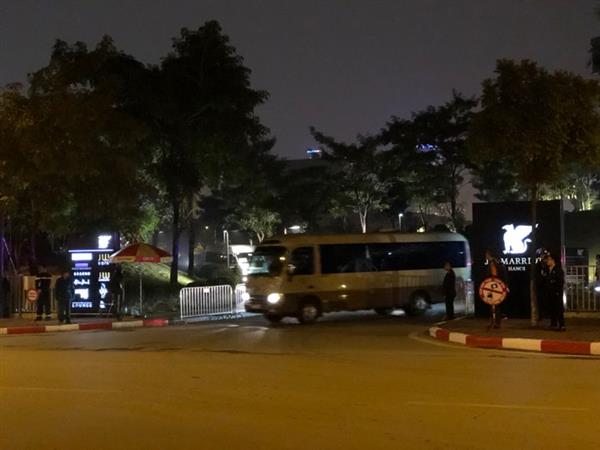 Tối 26/2, an ninh đã được tăng cường nghiêm ngặt trong và xung quanh khách sạn Khách sạn JW Marriott trước khi Tổng thống Mỹ Donald Trump có mặt tại Hà Nội để chuẩn bị cho Hội nghị thượng đỉnh Mỹ-Triều Tiên lần 2.