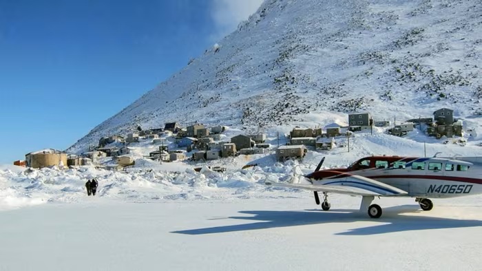 Đảo Little Diomede (Mỹ) khi bị bao phủ bởi băng tuyết. Nguồn: Matthew Guiffré/KNOM.