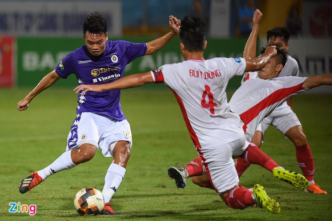 CLB Hà Nội có nhiều phương án tấn công nhưng không thể xuyên thủng hàng phòng ngự của Viettel. Ảnh: Việt Hùng.