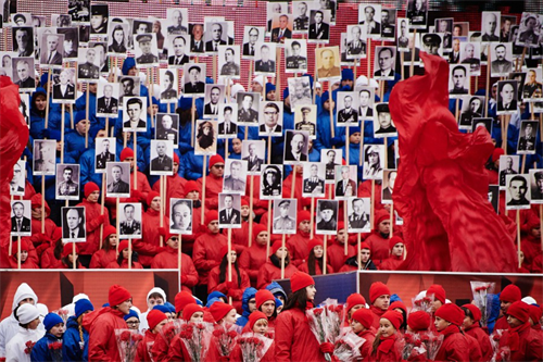 Những hình ảnh cuộc chiến đấu dũng cảm của các lực lượng quân đội và nhân dân Liên Xô trong cuộc chiến tranh Vệ quốc được tái hiện bằng việc phối hợp tạo hình giữa các chiến sĩ thực mang sắc phục thời đó và một màn hình khổ lớn đặt giữa Quảng trường Đỏ chiếu những hình ảnh lịch sử tạo nên một không gian rất sống động.