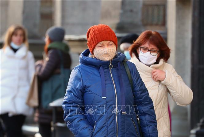 Người dân đeo khẩu trang phòng lây nhiễm COVID-19 tại Minsk, Belarus. Ảnh: THX/TTXVN.