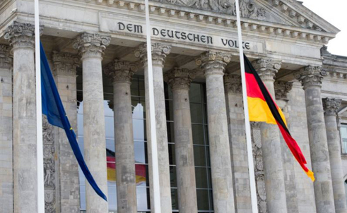 Cờ tang treo trước tòa nhà quốc hội nước Cộng hòa Liên bang Đức.